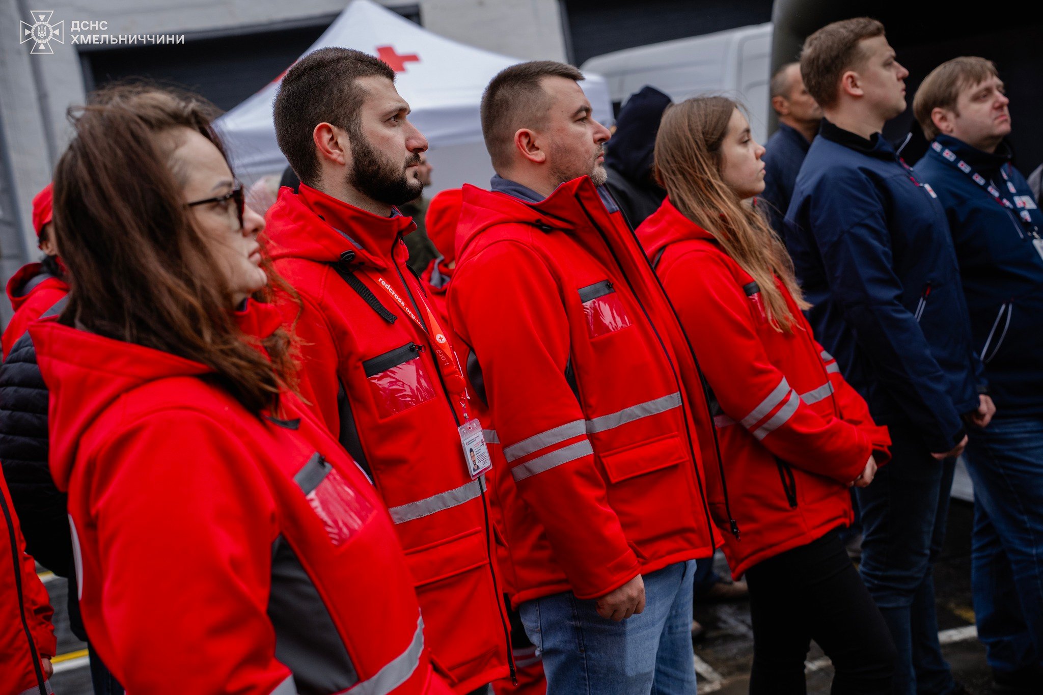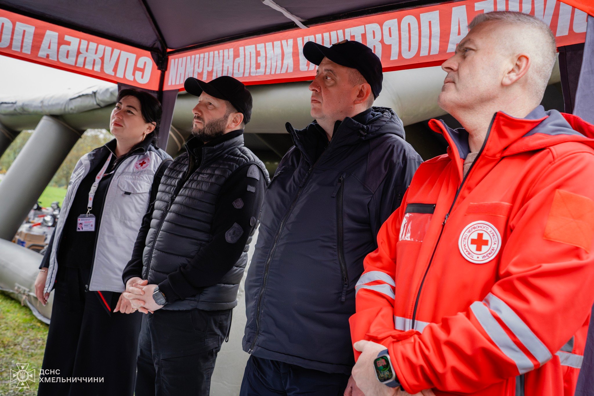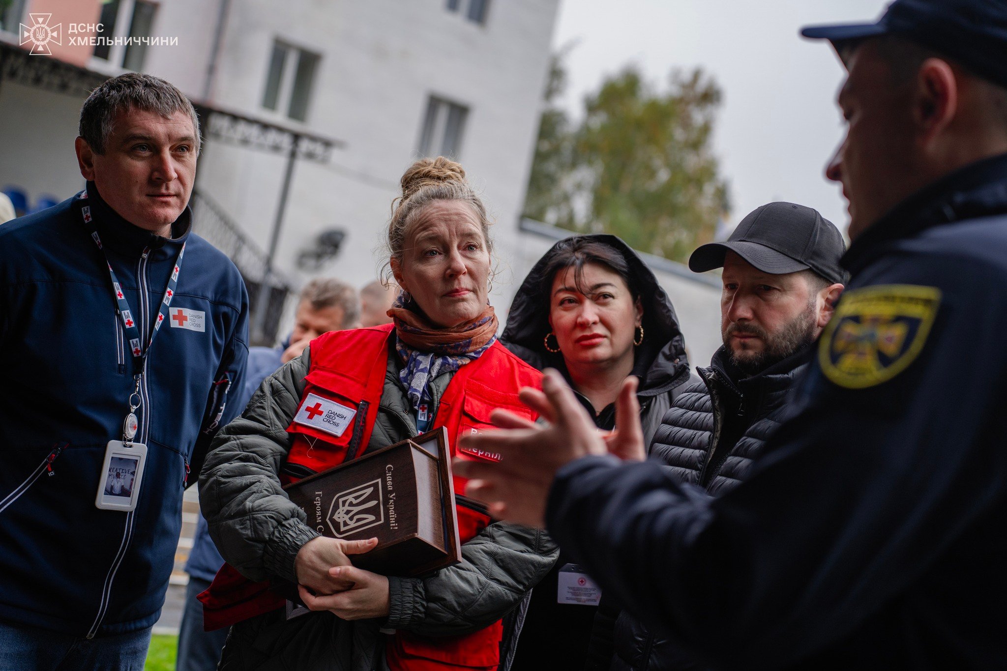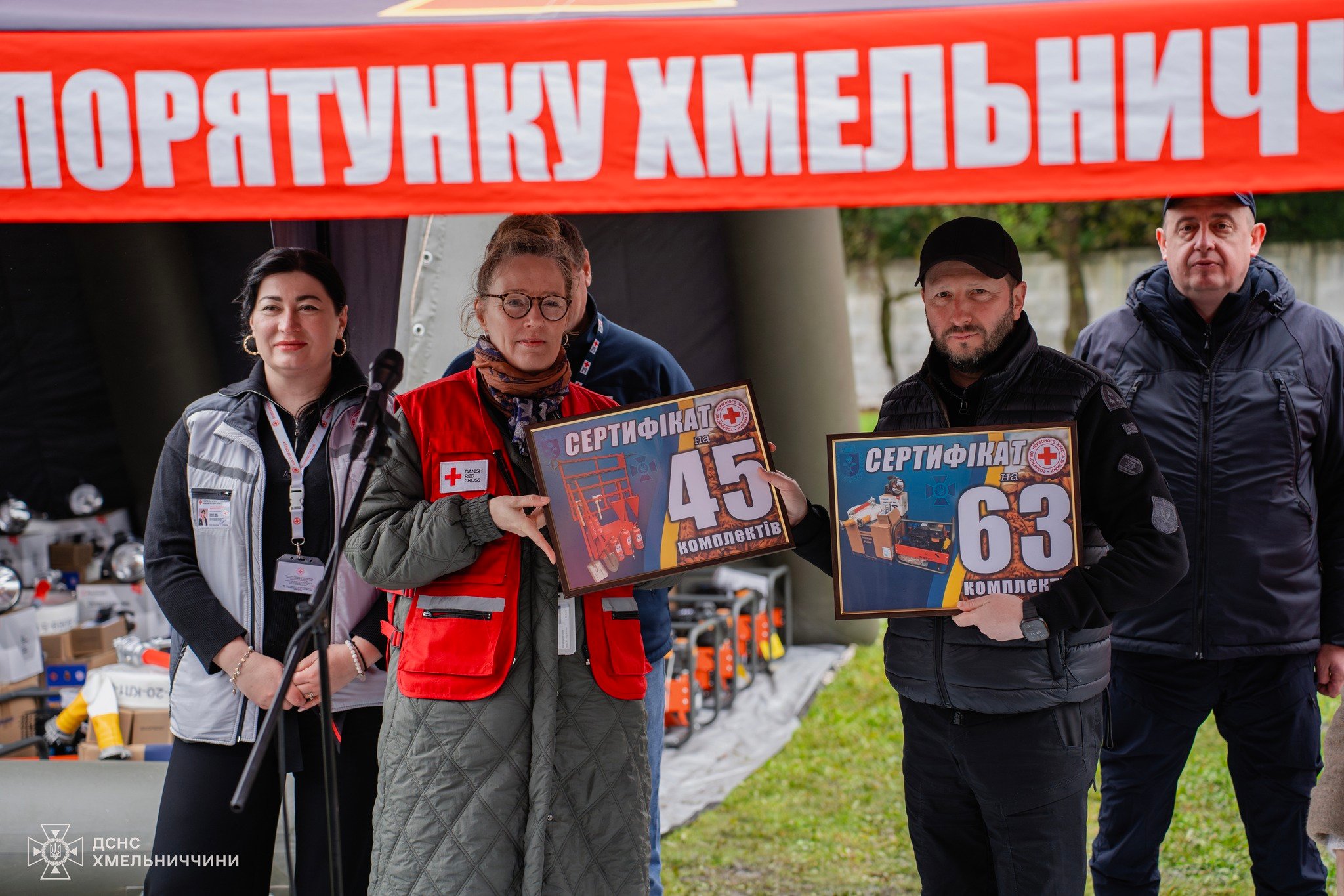 У заході взяли участь начальник обласної військової адміністрації Cергій Тюрін - Голова Хмельницької ОДА, т.в.о. начальника Головного управління ДСНС України у Хмельницькій області Олександр Горін, начальник відділу цивільного захисту Товариства Червоного Хреста України Олексій Бородай, голова Хмельницької обласної організації ТЧХУ Надія Пилипчук, голова делегації Національного товариства Червоного Хреста Данії (Danish Red Cross) Пернілле Гвітнов.
