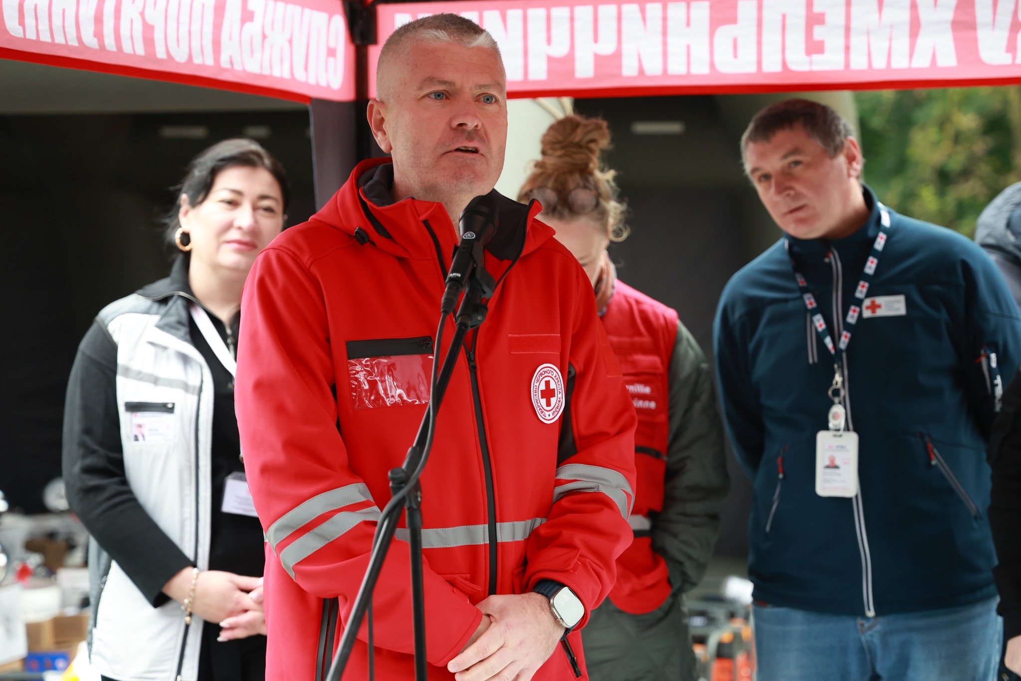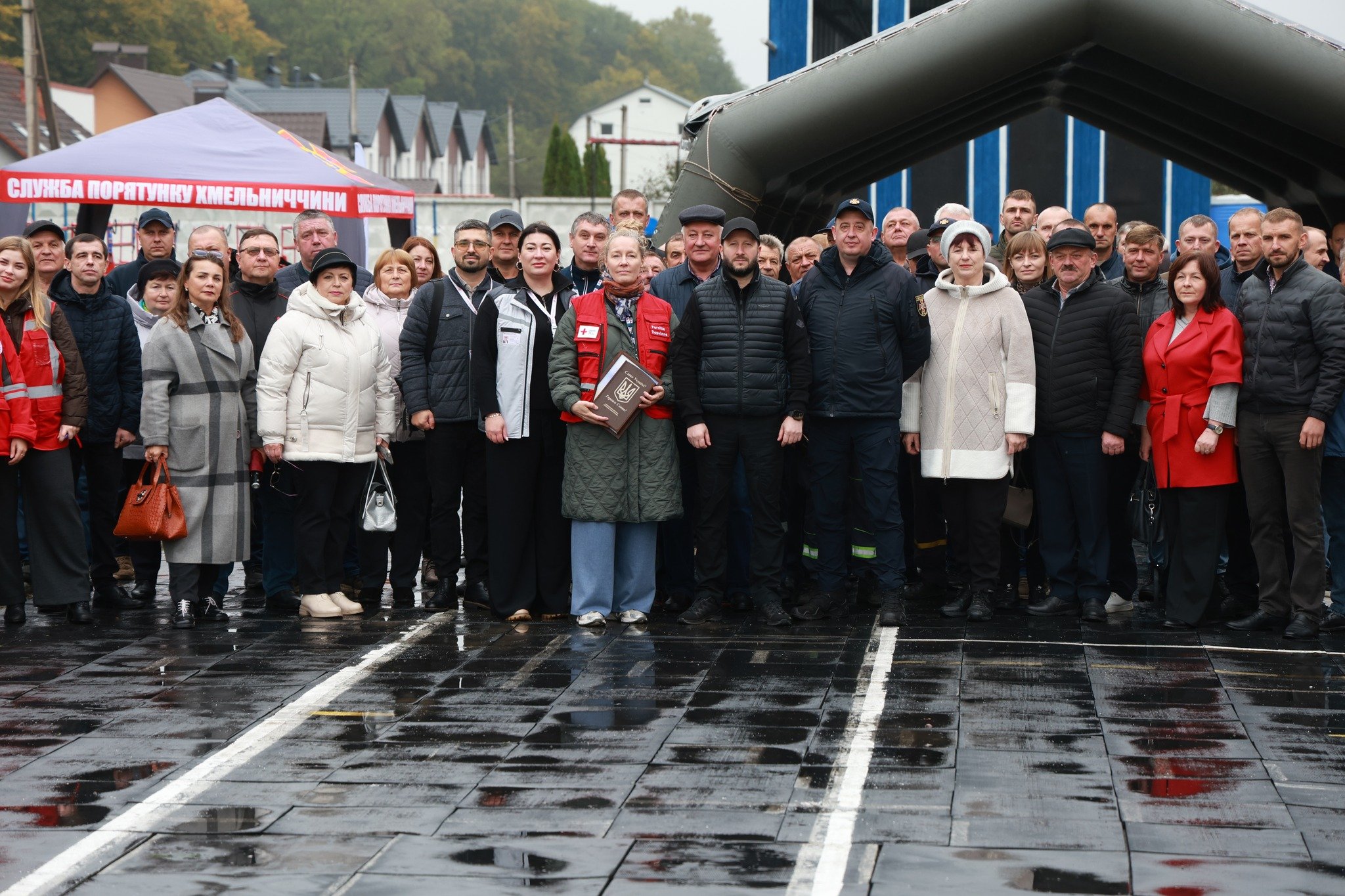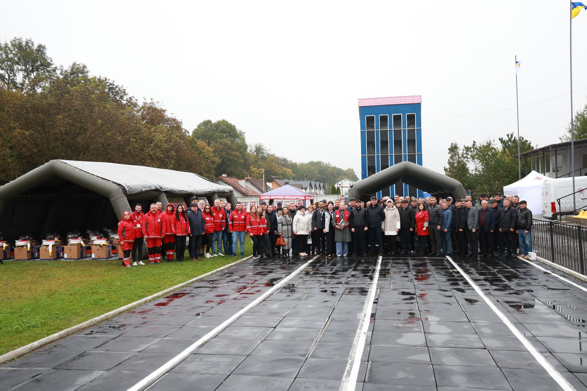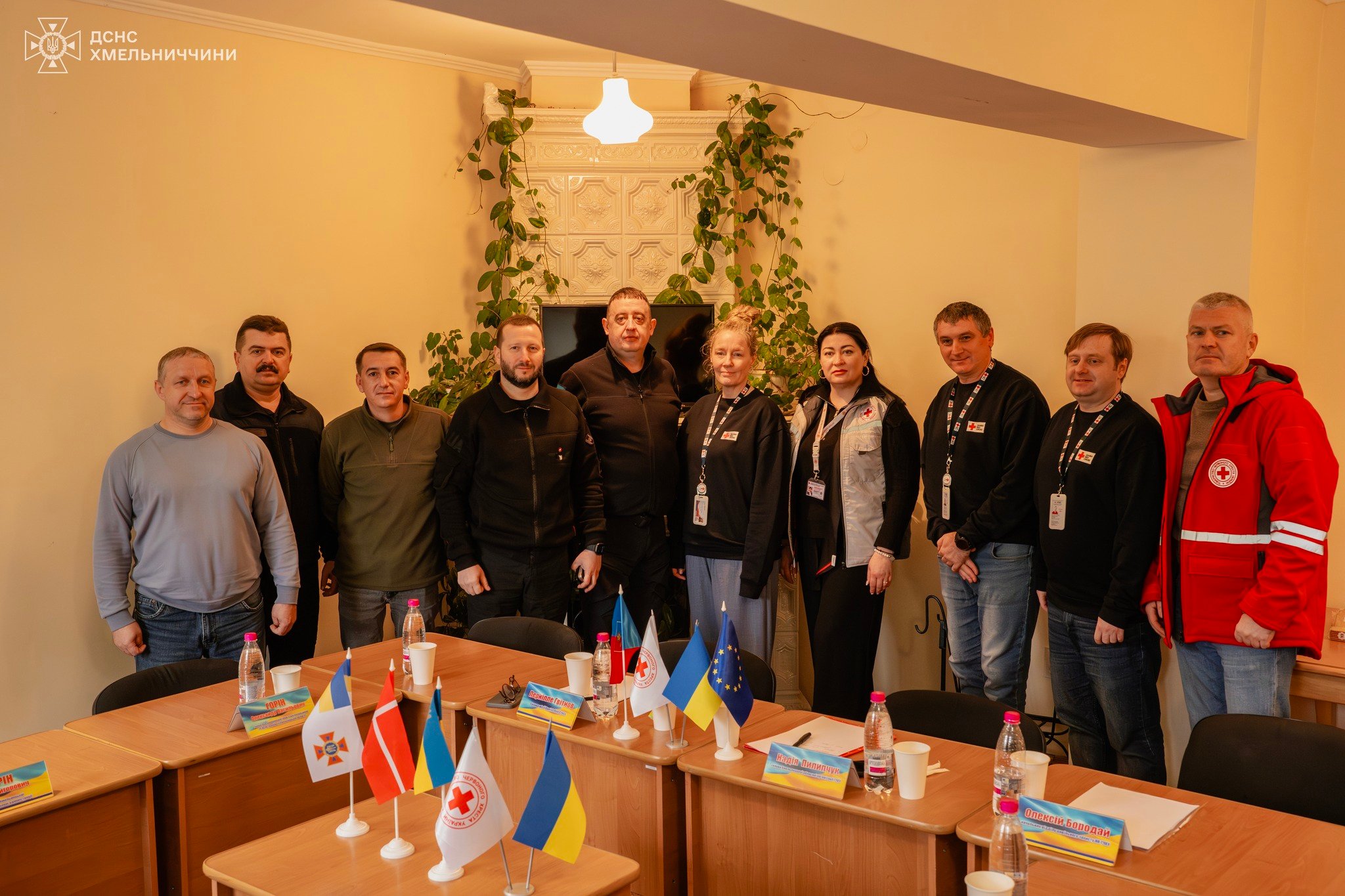 У заході взяли участь начальник обласної військової адміністрації Cергій Тюрін - Голова Хмельницької ОДА, т.в.о. начальника Головного управління ДСНС України у Хмельницькій області Олександр Горін, начальник відділу цивільного захисту Товариства Червоного Хреста України Олексій Бородай, голова Хмельницької обласної організації ТЧХУ Надія Пилипчук, голова делегації Національного товариства Червоного Хреста Данії (Danish Red Cross) Пернілле Гвітнов.