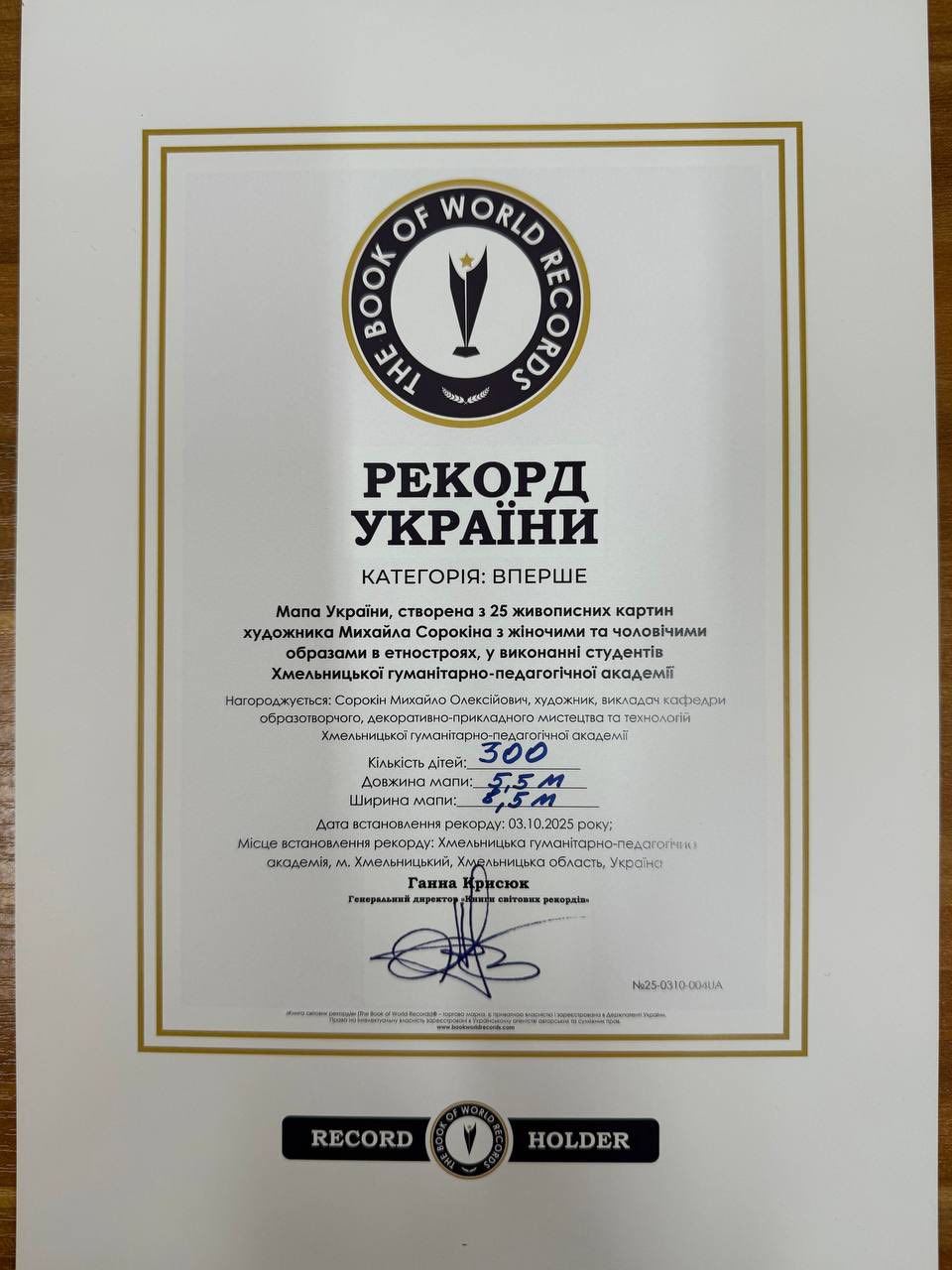 На замовлення ректора, професора Інни Шоробури, за участі офіційної представниці Книги Світових Рекордів у Хмельницькій області Аліни Скоморохової відбулася фіксація рекорду України «Мапа України», створена з 25 живописних картин художника Михайла Сорокіна з жіночими та чоловічими образами в етностроях, за участю 300 студентів Хмельницької гуманітарно-педагогічної академії.