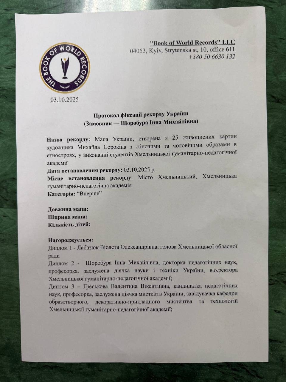 Фіксацію рекорду також підтримала волонтерка пані Аля Абасова. Пані Аліна Скоморохова вручила сертифікат про встановлення рекорду та дипломи.