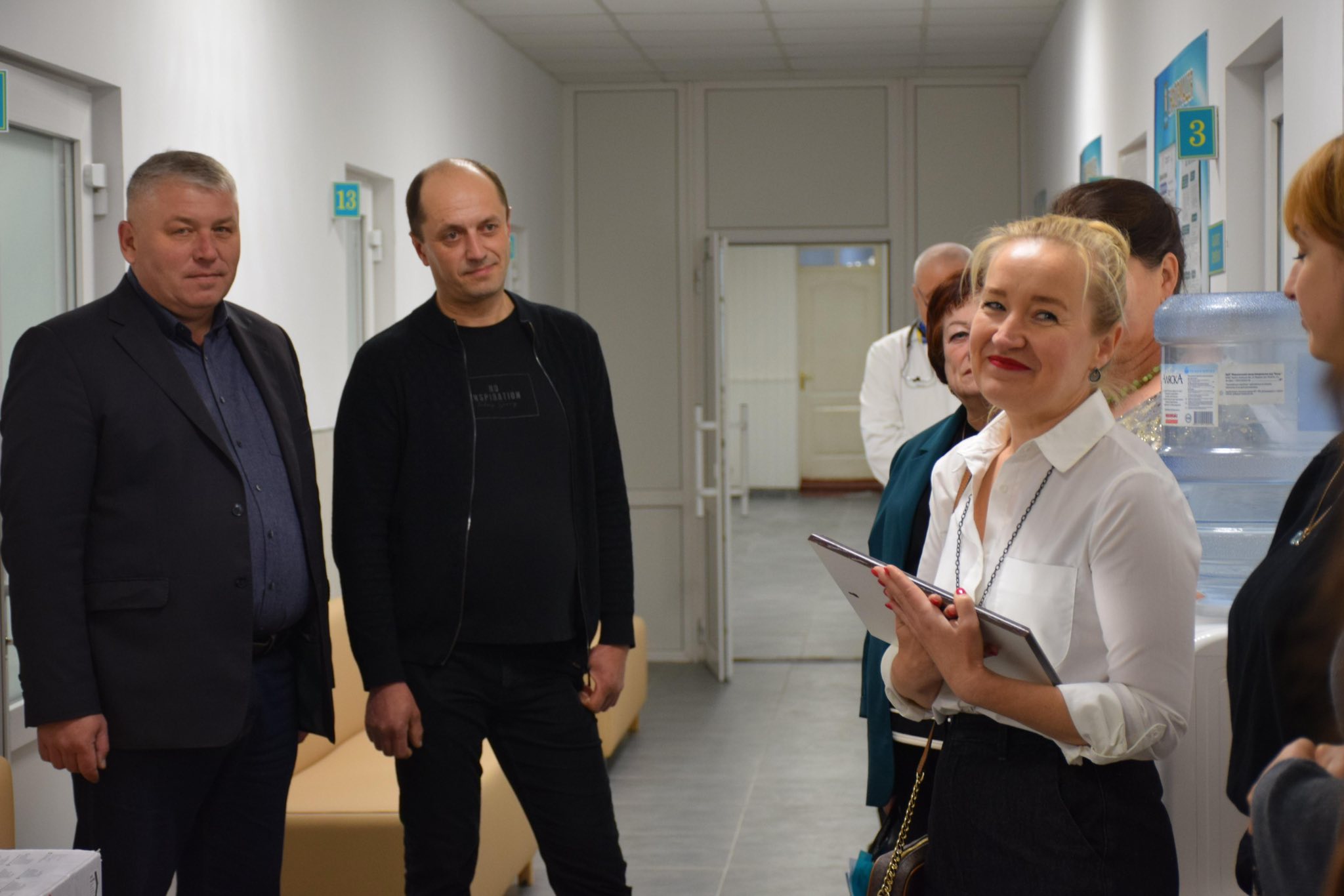 Міський голова Віталій Бузиль, заступники Галина Безкоровайна та Ольга Петрова, а також директор Центру ПМСД Олександр Баранник оглянули оновлені приміщення, ознайомили гостей із роботою амбулаторії та результатами плідної співпраці.