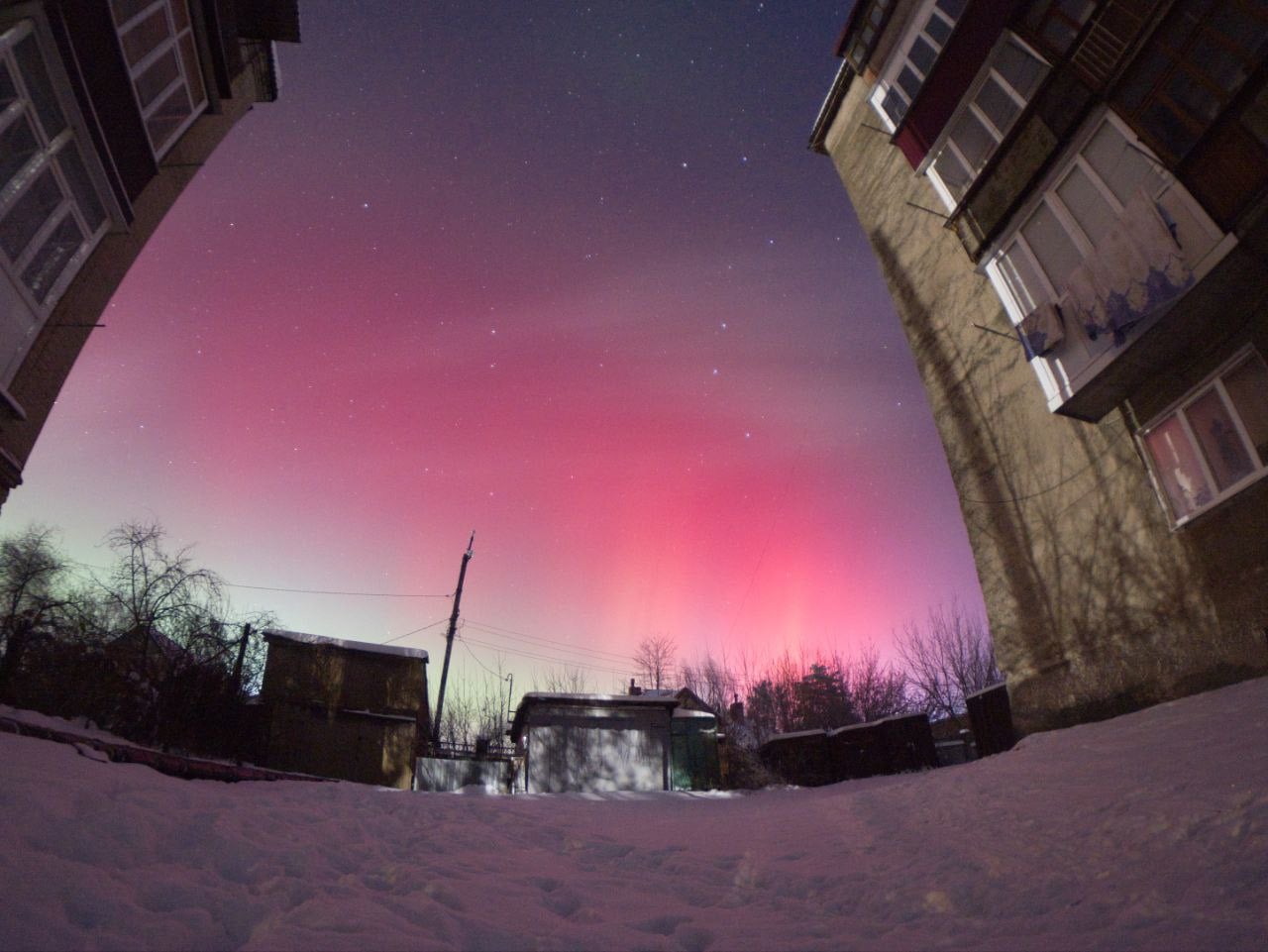 Соціальні мережі шепетівчан заповнили неймовірні світлини: небо забарвилося у нетипові рожеві та фіолетові відтінки. Найкраще видовище було помітно у тих частинах міста та району, де менше вуличного освітлення, а також у напрямку північного горизонту.