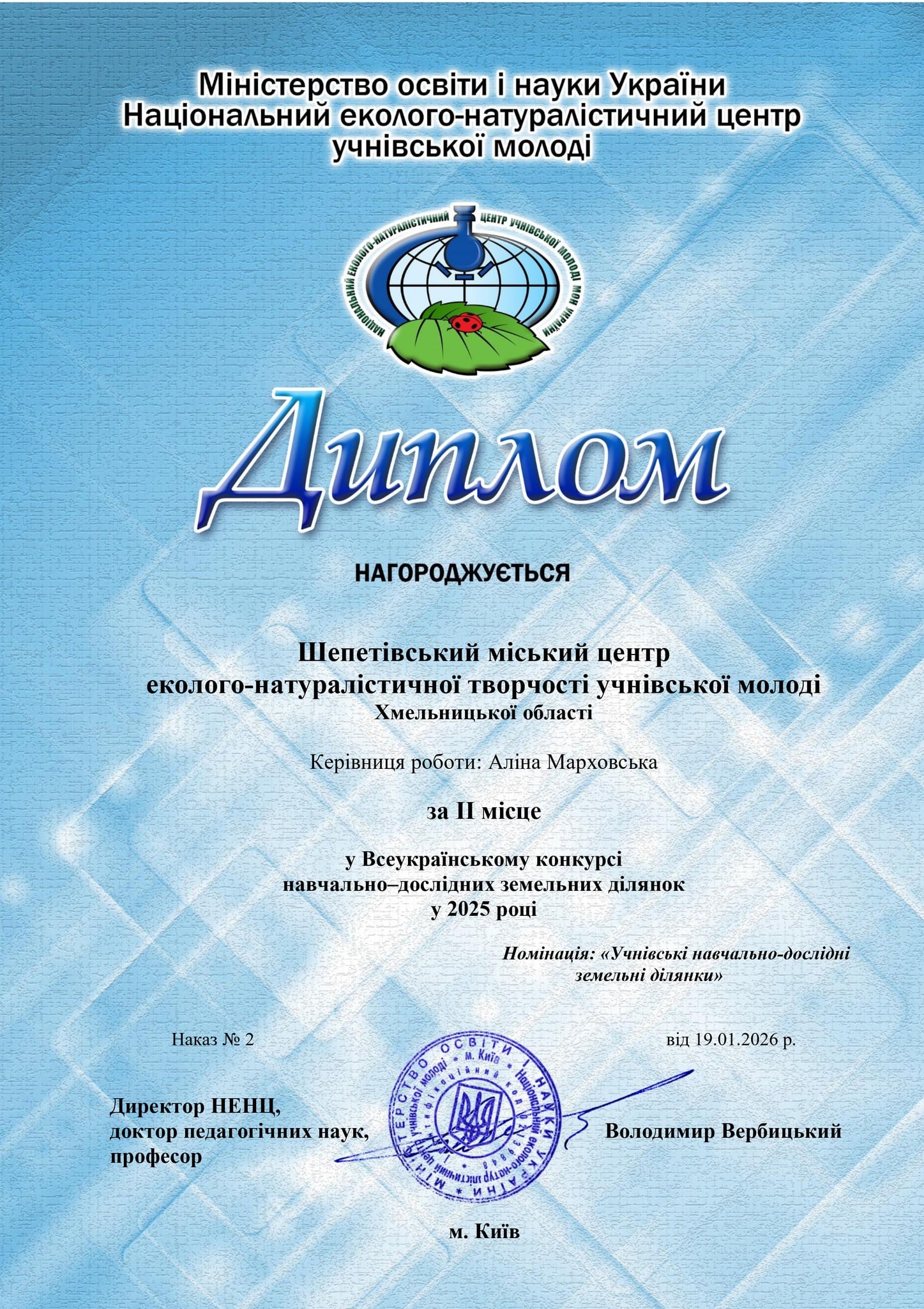 Довідково: Шепетівський міський ЦЕНТУМ є багатопрофільним закладом позашкільної освіти, який фокусується на науково-дослідній, природоохоронній та патріотичній діяльності учнівської молоді. Вихованці закладу регулярно стають стипендіатами та призерами міжнародних і всеукраїнських конкурсів.