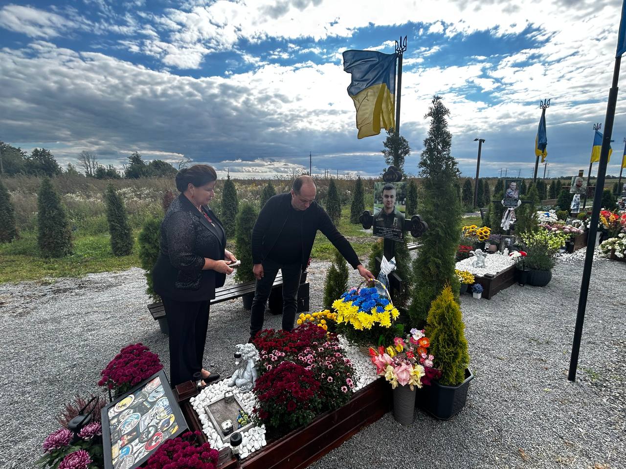 Також голова громади Віталій Бузиль та заступник Галина Безкоровайна поклали квіти на могилу Героя на міському кладовищі.