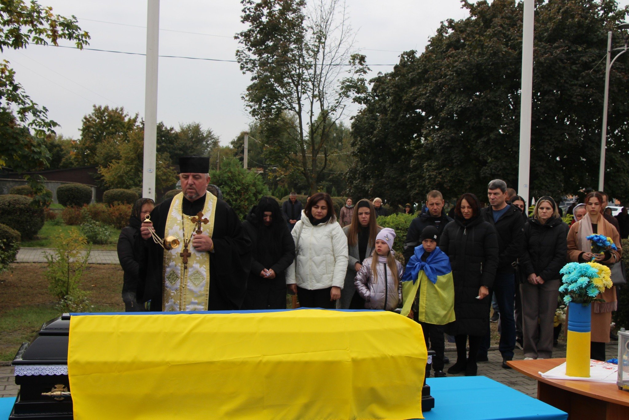Спільна молитва за упокій душі Героя лунала перед будівлею виконкому міської ради. Після прощання чин похорону відбувся в Соборі святого архістратига Михаїла та архангела Гавриїла.