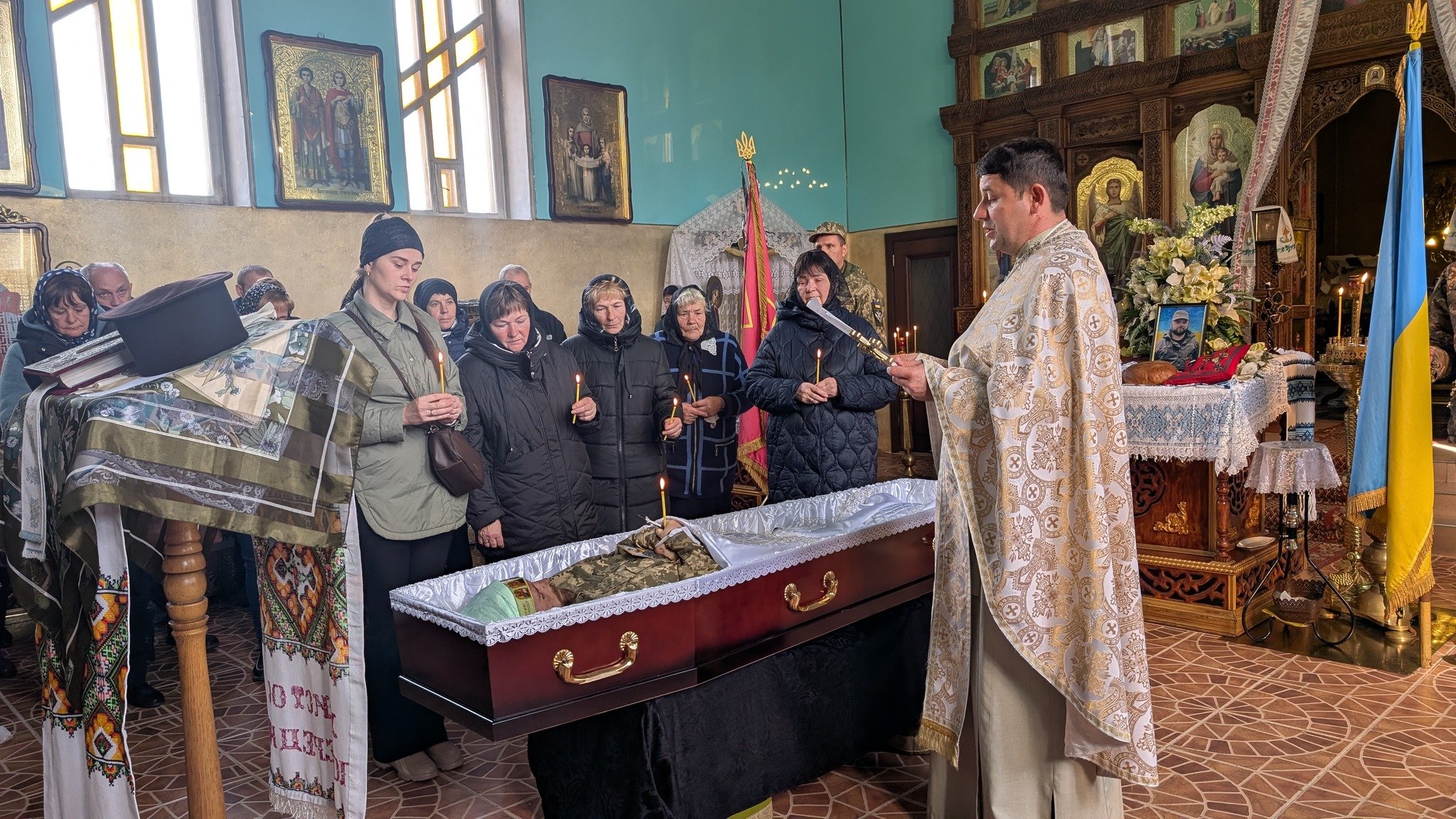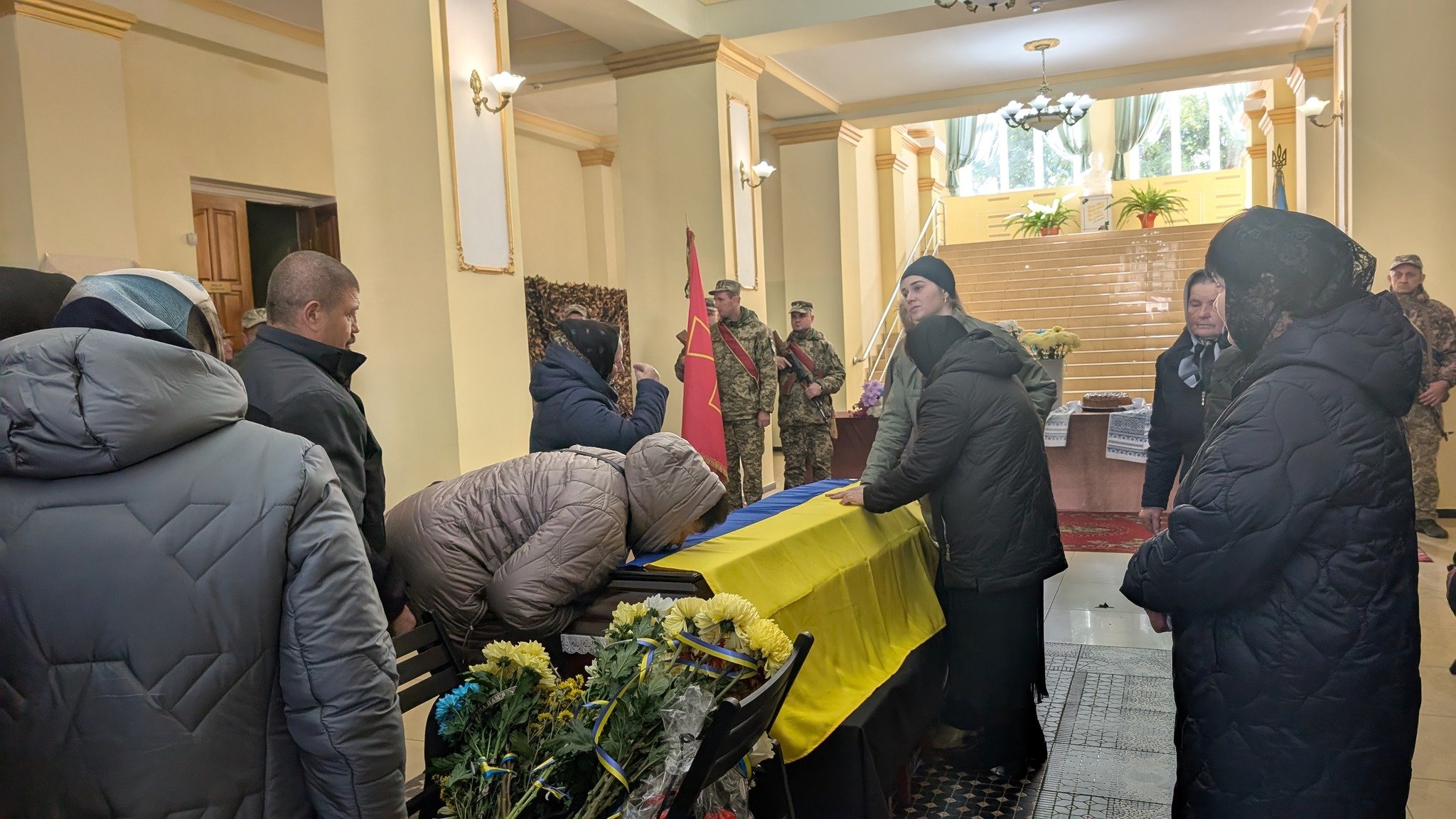 Під час прощання із Андрієм Семенюком свої співчуття родині висловили його побратими і символічно передали мамі прапор бригади, в які служив наш полеглий Герой.