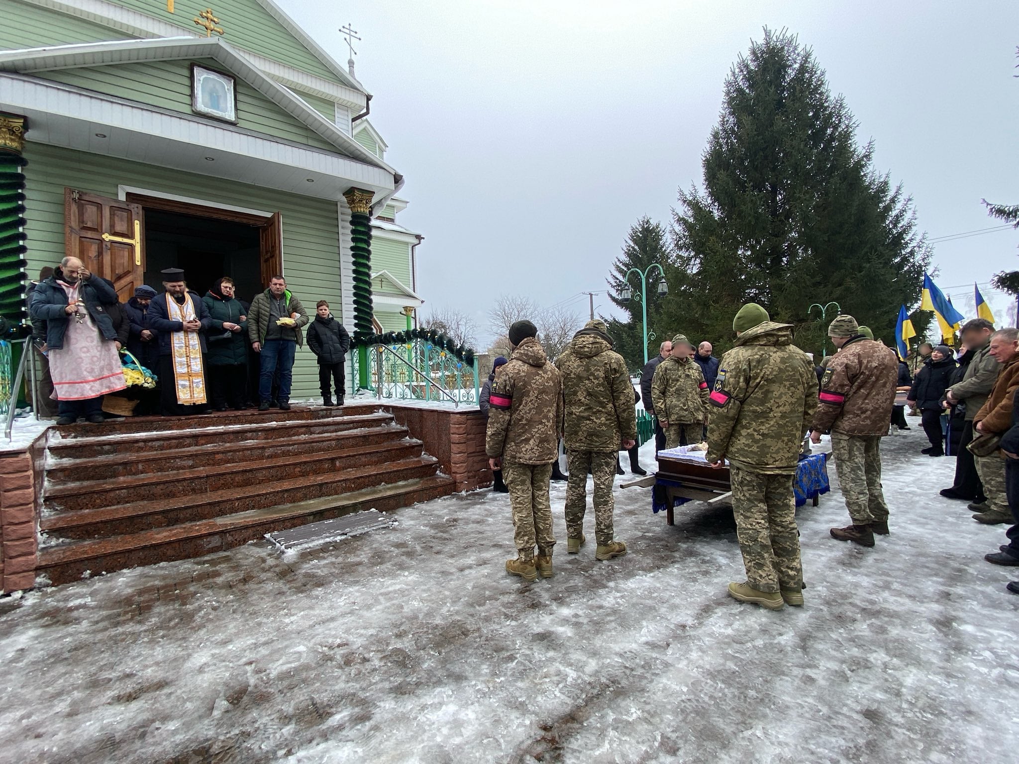 Рідні, близькі, друзі, священнослужителі, бойові побратими, жителі громади провели в останню дорогу та віддали шану полеглому захиснику спочатку біля його рідної домівки. Заупокійна служба пройшла у Покровській церкві.. Поховали військового на Новому кладовищі.