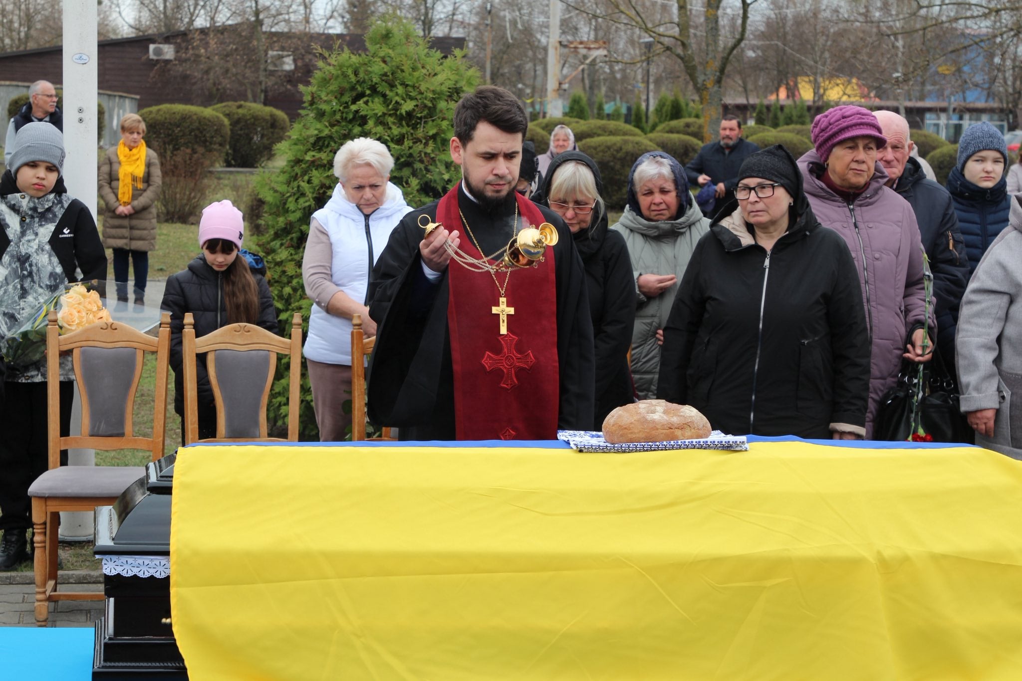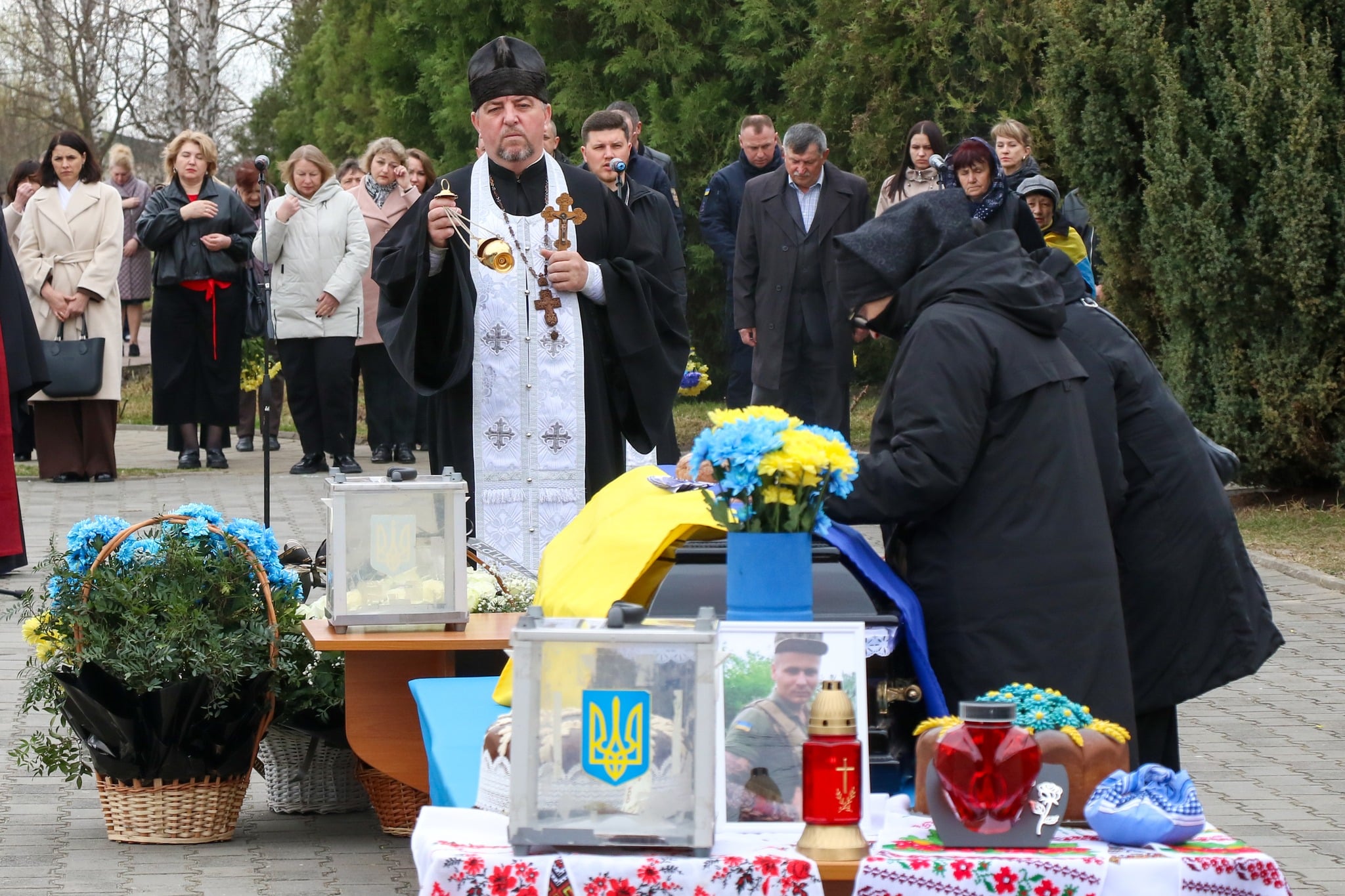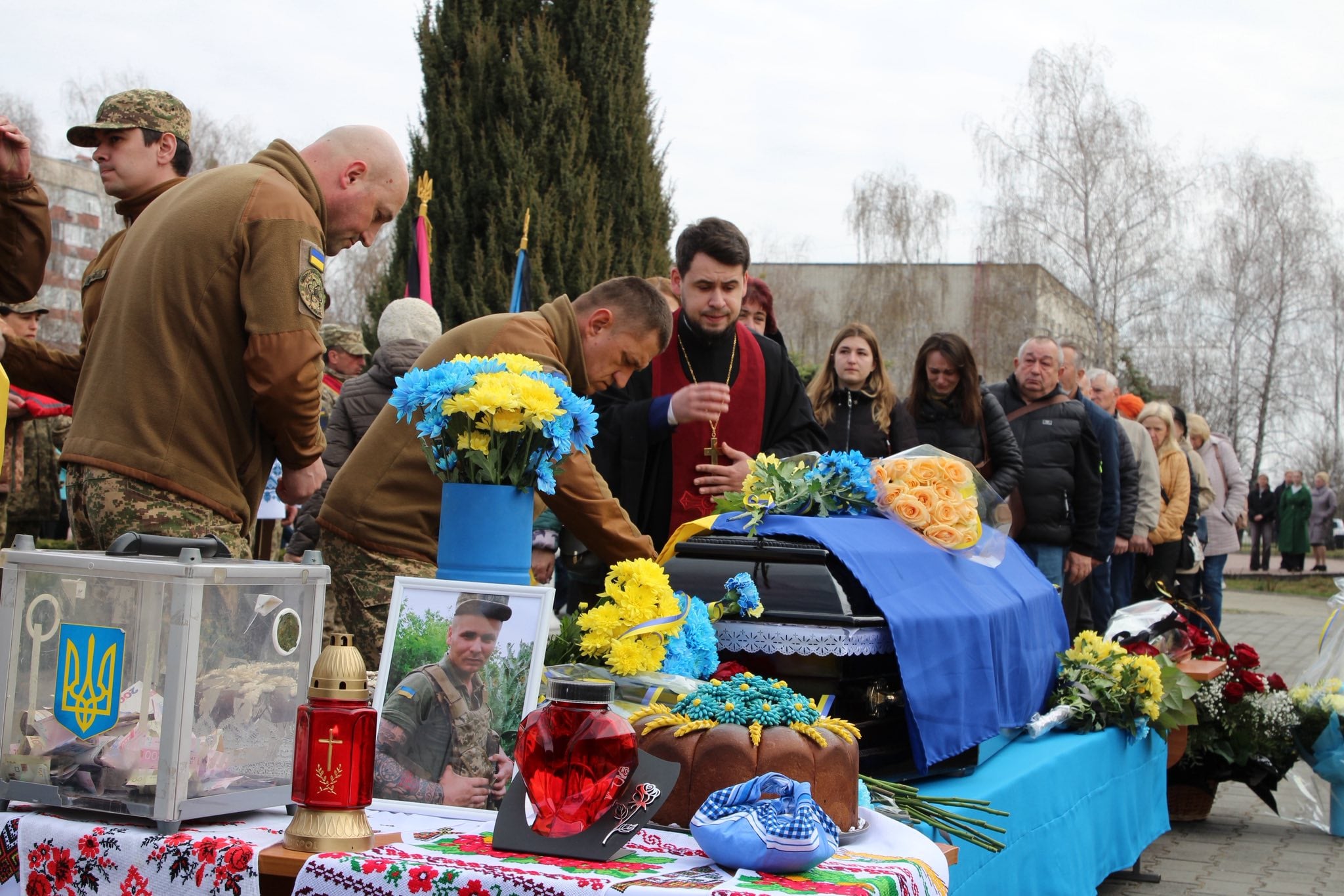 Прощання відбулося на площі перед адміністративною будівлею виконавчого комітету міської ради. Священники звершили молитву за упокій душі загиблого Захисника, підносячи щирі прохання до Бога за його вічний спокій.