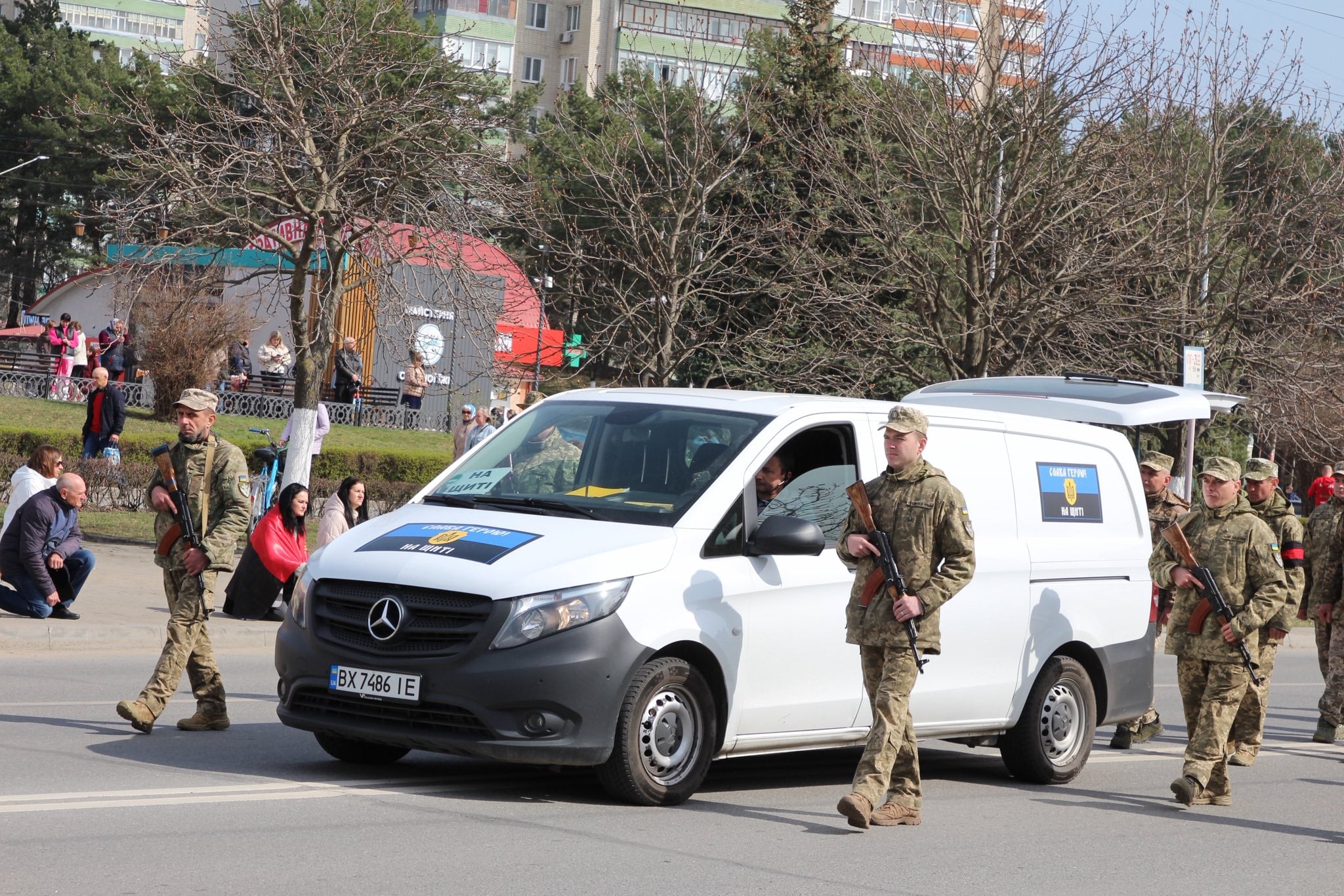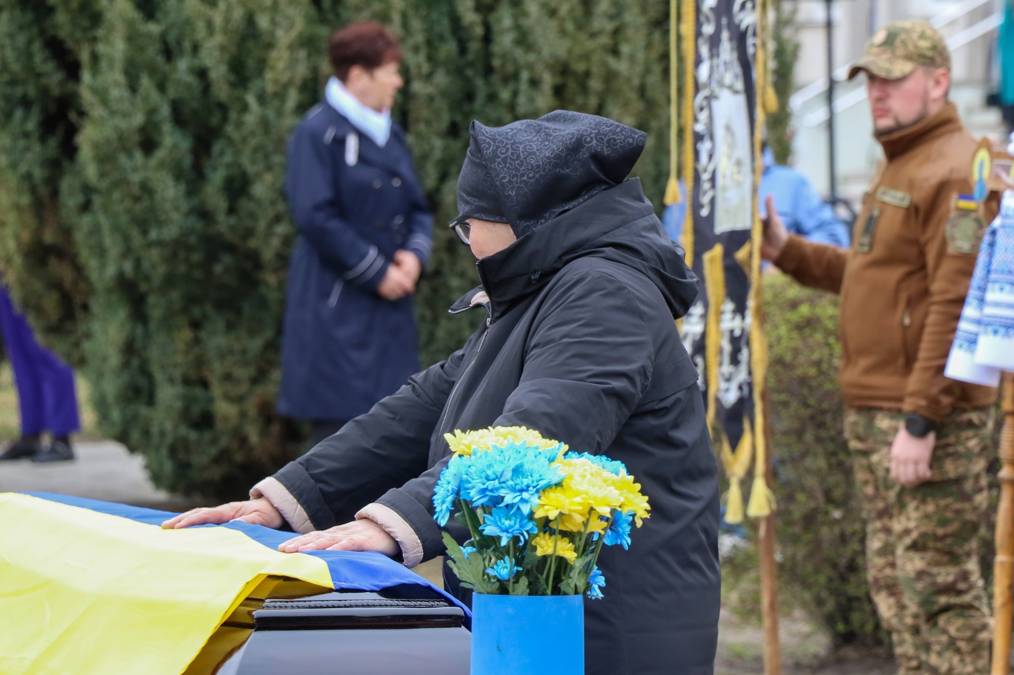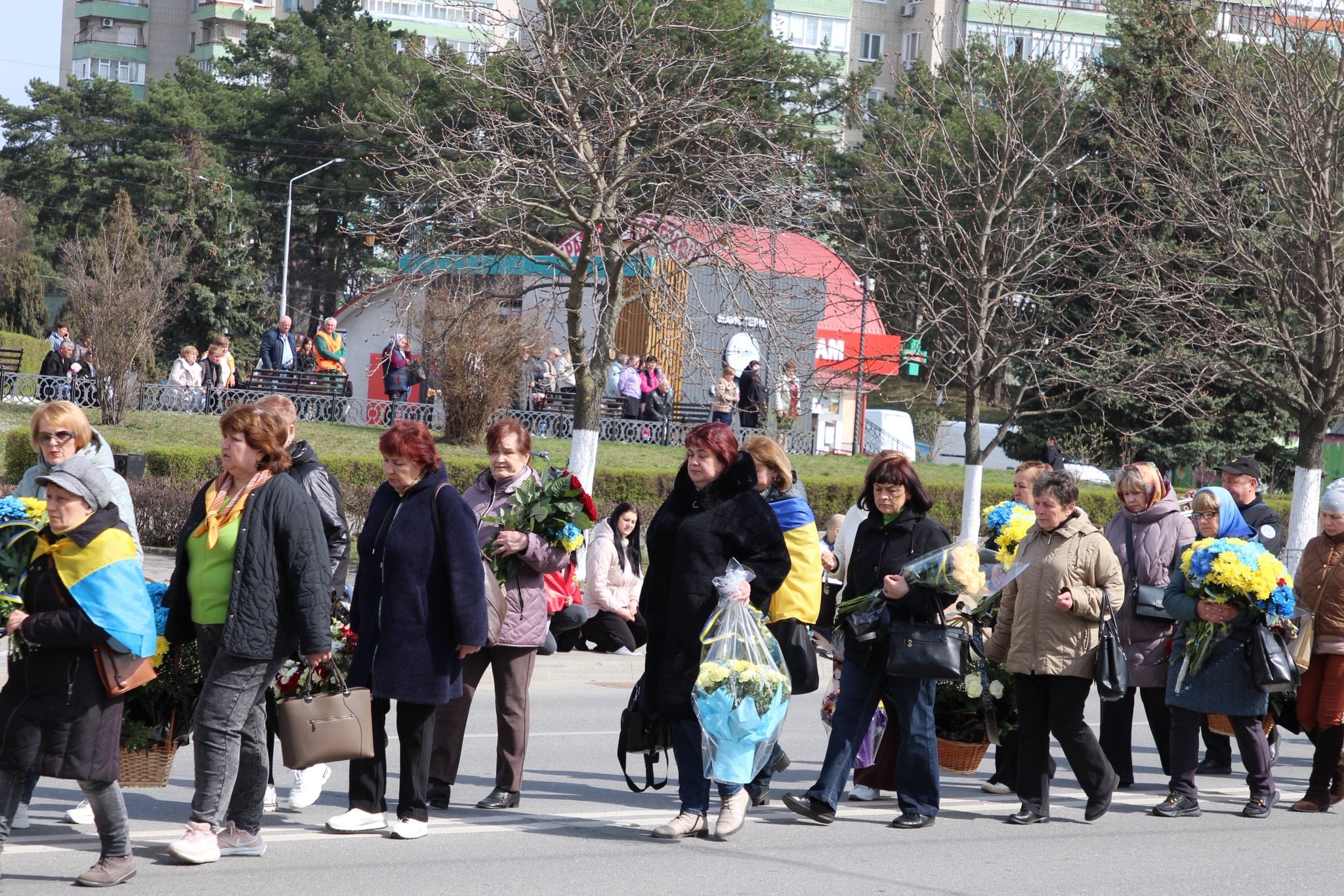 Місто зустрічало Героя навколішки…Із квітами, державними прапорами, зі сльозами на очах люди віддавали останню шану воїну, який віддав своє життя за Україну, за кожного з нас.