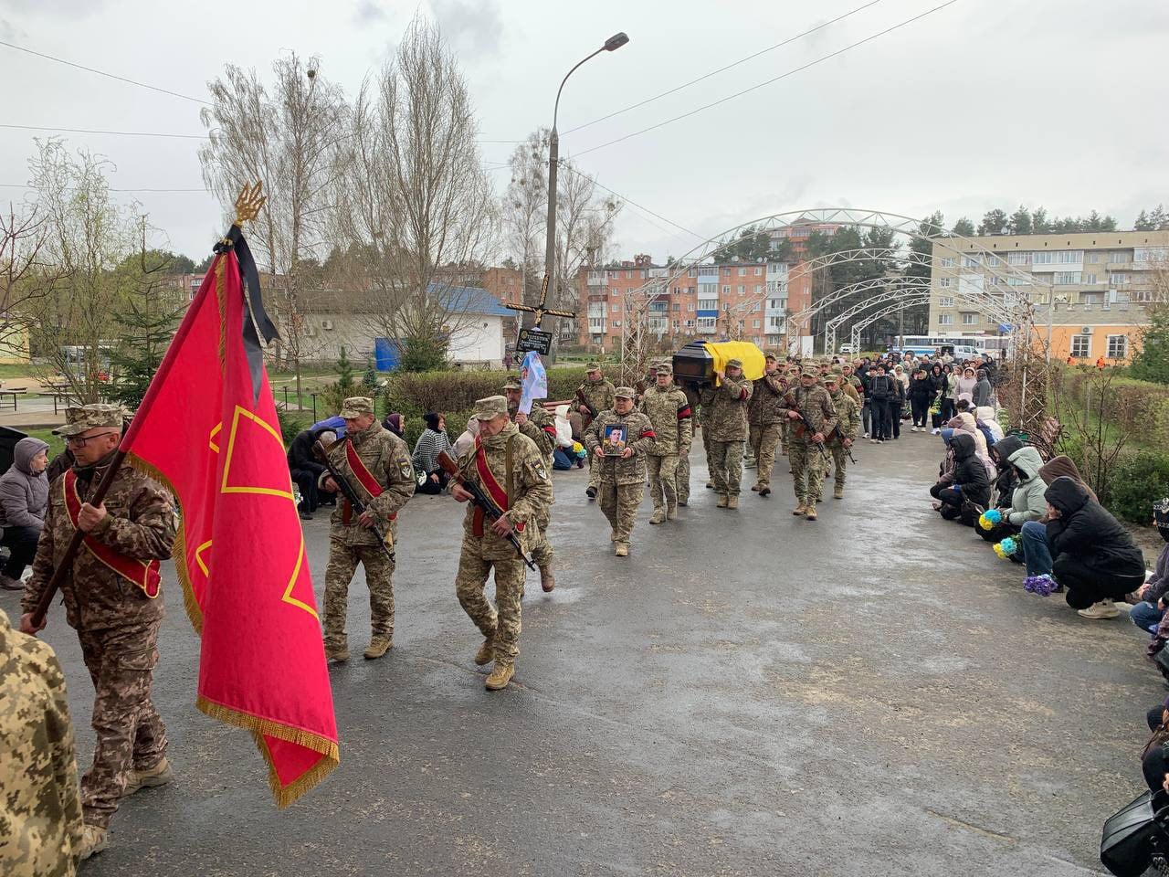 Під час церемонії прощання присутні вшанували пам’ять Героя хвилиною мовчання. Схиливши голови, утворивши живий коридор пошани, громада провела свого Захисника в останню дорогу.