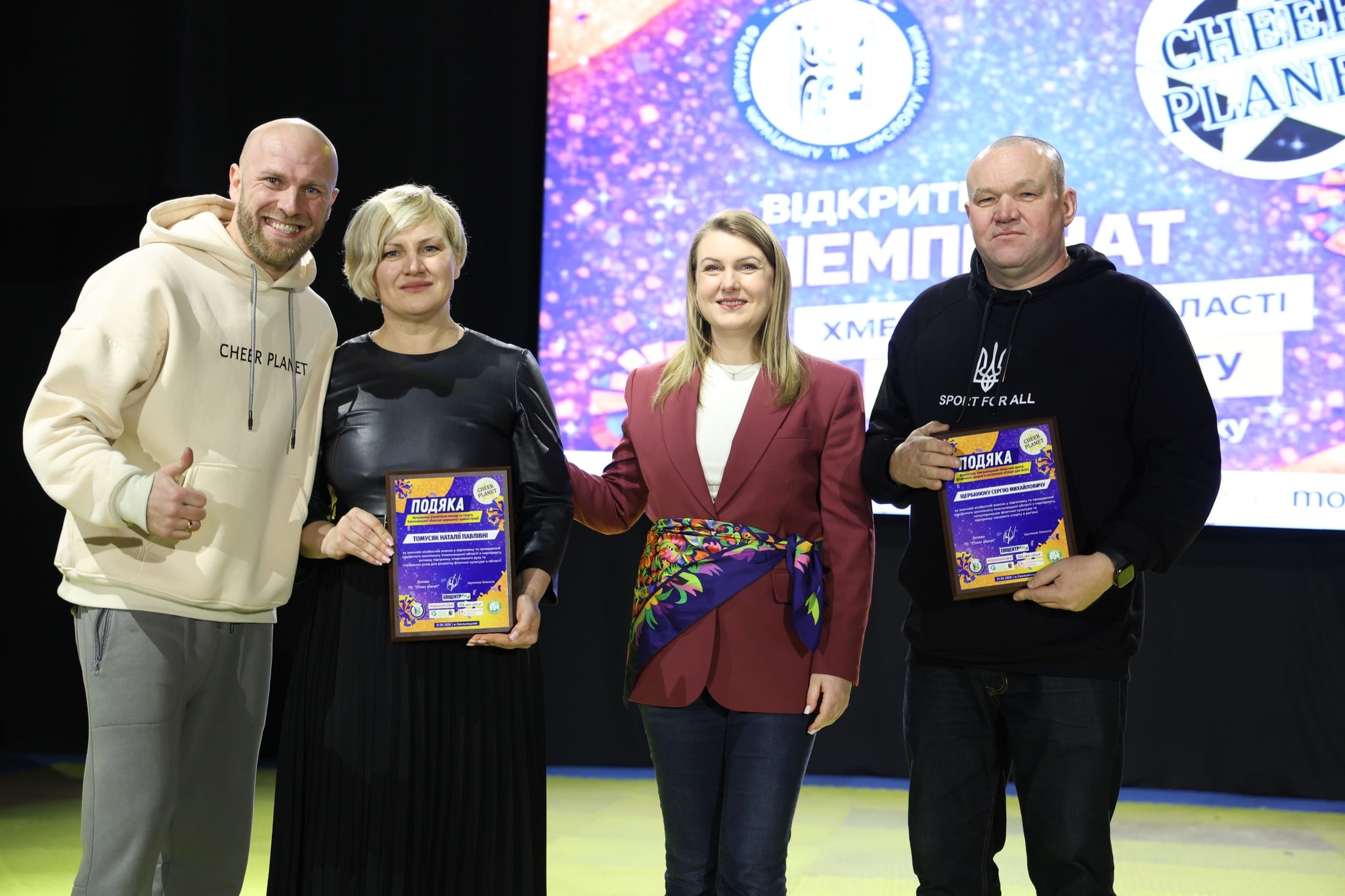 Окремим урочистим моментом заходу стало відзначення тих, хто робить системний внесок у популяризацію спорту. Від імені голови Хмельницької ОДА Сергія Тюріна Почесну грамоту було вручено Олексію Шулякову — голові відокремленого підрозділу «Федерації чирлідингу та чирспорту України в Хмельницькій області» та керівнику ГО «Cheer Planet».