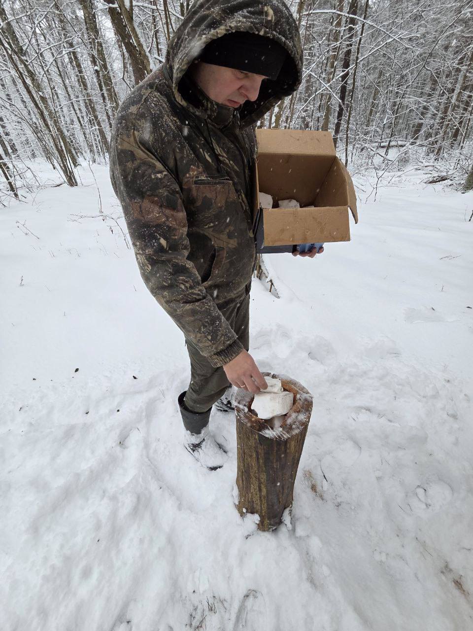 Під час виїздів на територію Парку фахівці наповнили солонці - спеціально облаштовані місця з мінеральними добавками. Узимку потреба в таких речовинах зростає, адже одноманітний раціон не завжди здатен повністю її задовольнити.
