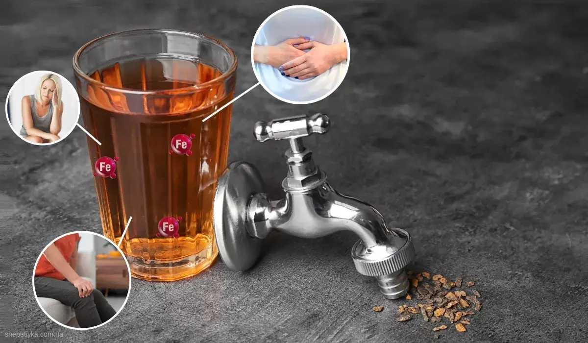 - споживання води із завищеним вмістом заліза призводить до його накопичення в організмі і призводить до проблем зі шлунком, шкірою, волоссям. Особливо небезпечно пити таку воду дітям.